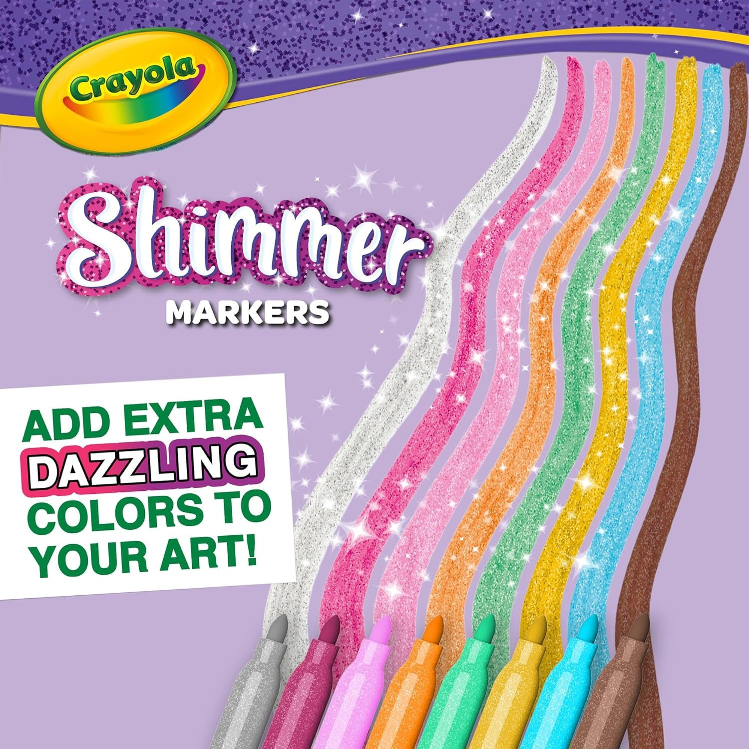 Crayola – Set 8 Pennarelli Glitter | Colori brillanti per progetti creativi su carta chiara e scura. Età consigliata: 3+. Codice prodotto: 58-8648.