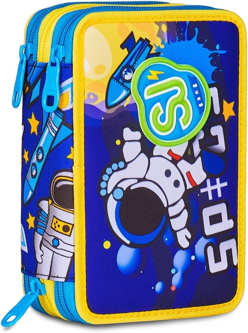 Preparati a decollare con stile con l’astuccio triplo SJ GANG FLYROCKET BOY, un accessorio scolastico grintoso e coloratissimo che unisce praticità e fantasia. Dotato di tre ampi scomparti separati con chiusure a zip resistenti, ti permette di organizzare con facilità penne, matite, evidenziatori, righelli e tutto il materiale necessario per affrontare la scuola con ordine e originalità.