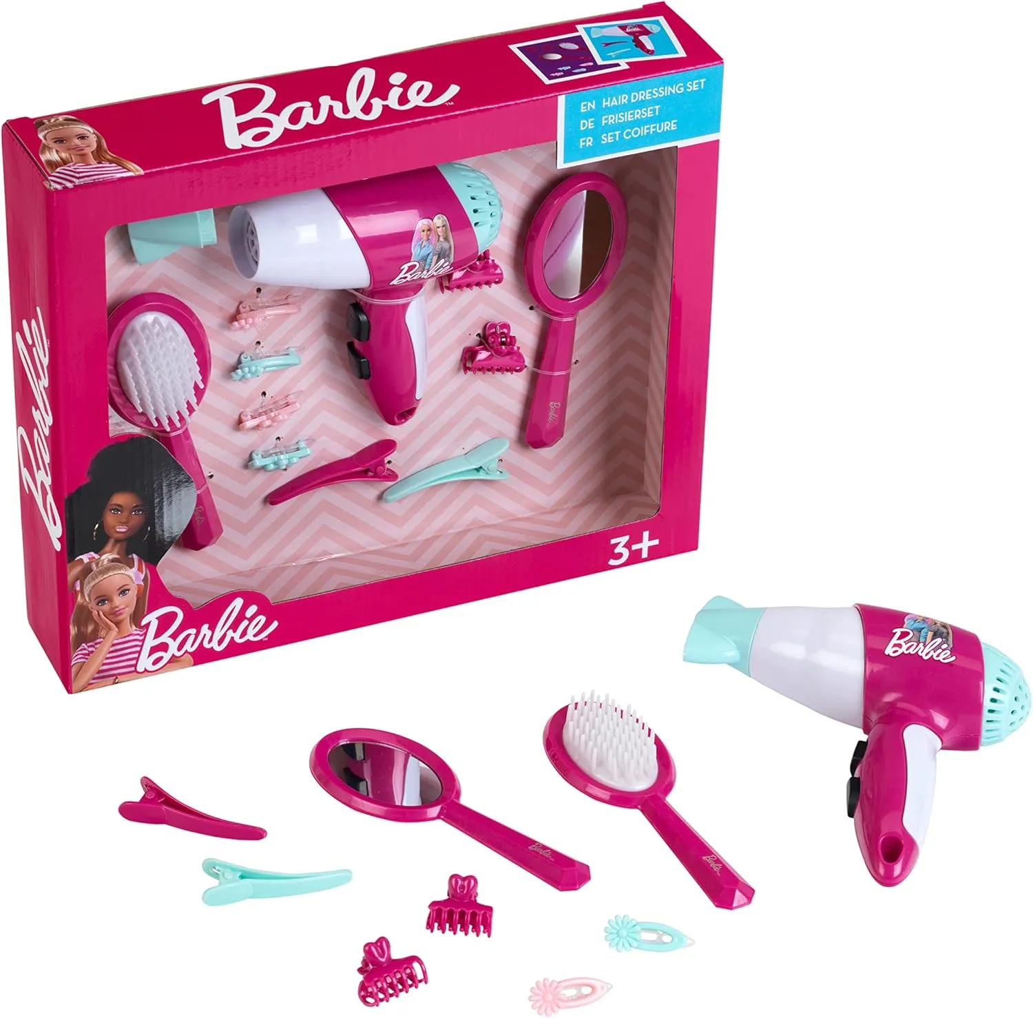 Il Barbie Set Parrucchiera + Forcine è un kit creativo pensato per i piccoli appassionati di moda e acconciature. Include un asciugacapelli giocattolo con funzione di aria fredda, un pettine e una selezione di forcine e accessori colorati, perfetti per inventare look sempre nuovi ispirati allo stile Barbie.