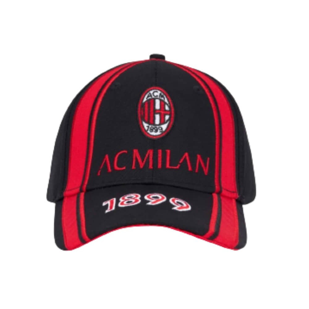 Sul frontale spicca il ricamo “1899”, un dettaglio che richiama l’anno di fondazione dell’AC Milan e che rende il cappellino immediatamente riconoscibile. La chiusura regolabile sul retro permette di adattare la misura con facilità, garantendo una vestibilità stabile e confortevole per adulti e ragazzi.