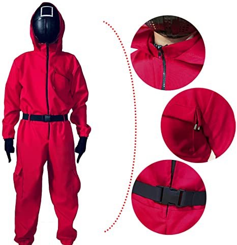 - Nota: la tuta è leggermente più grande, l’abbigliamento include maschera, tuta, cintura e guanti.