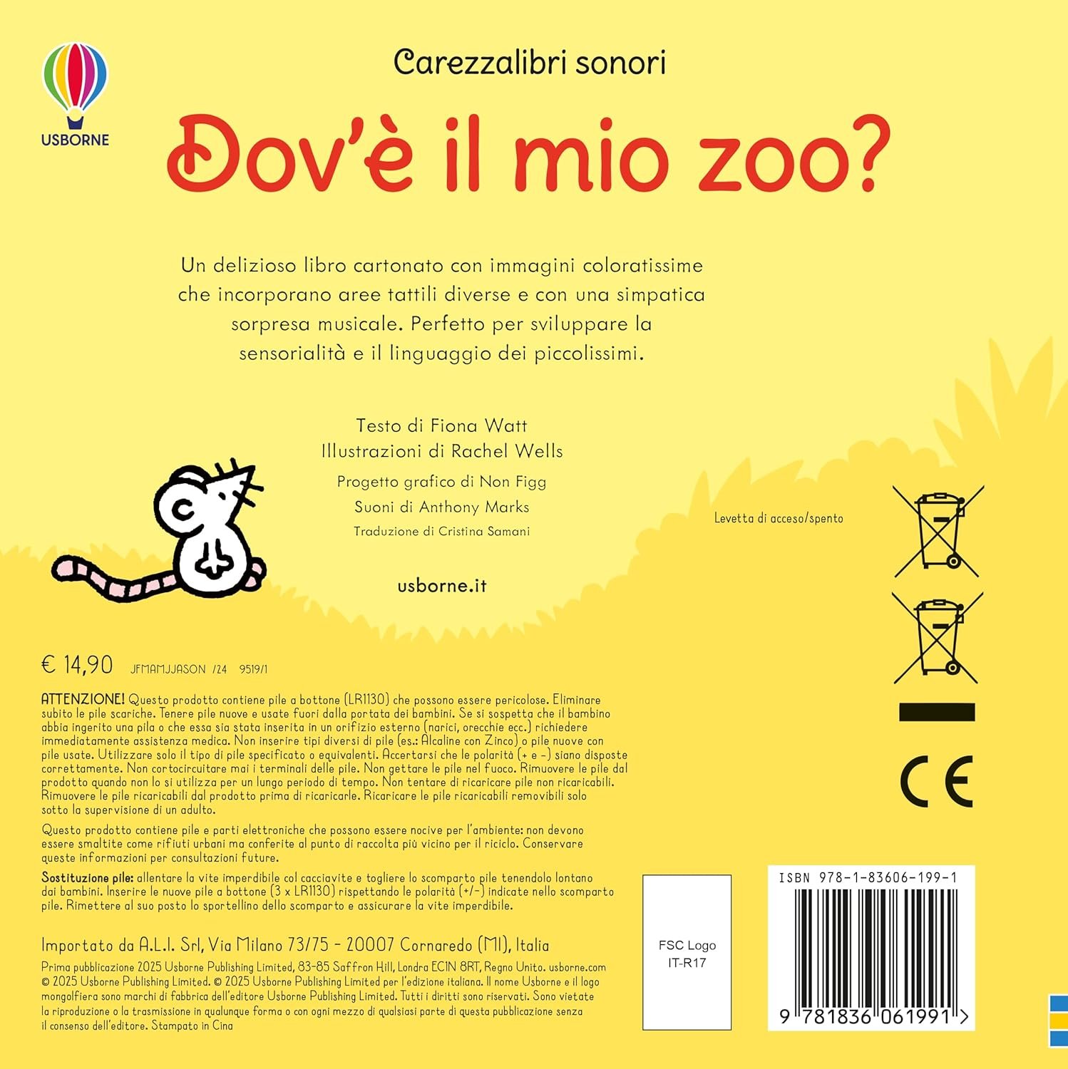 Accanto agli elementi tattili, il libro include pulsanti sonori che riproducono versi realistici o suoni divertenti, trasformando la lettura in un gioco interattivo. Le frasi semplici e ripetitive aiutano i bambini a riconoscere parole e concetti, rendendolo ideale per la fascia 1-3 anni.