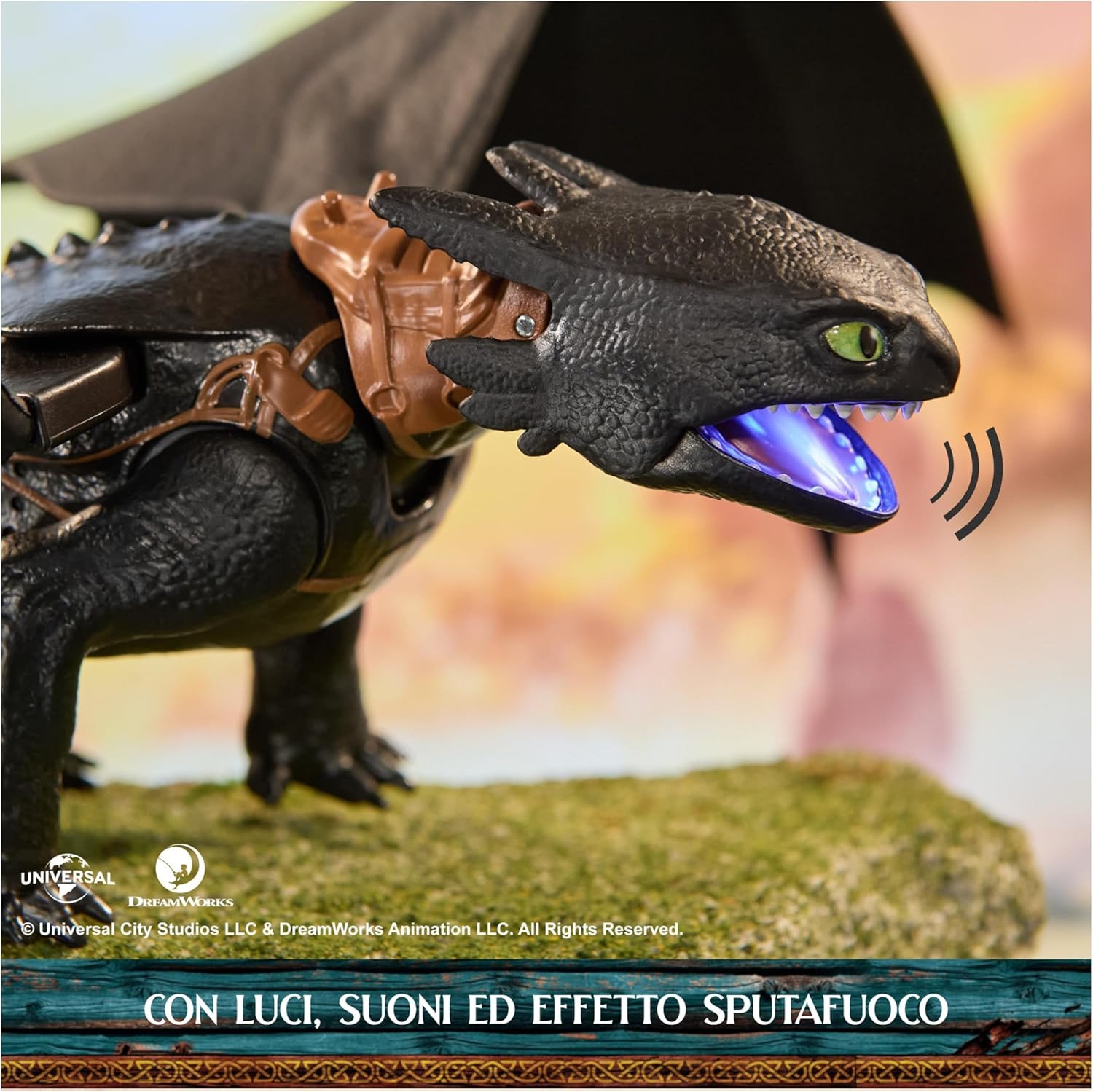 Scopri l’azione con Toothless Plasma Blast Ultimate, l’action figure interattiva del celebre drago Sdentato. Con effetti luminosi, suoni realistici e ali mobili, questo giocattolo da 38 cm riproduce il mitico attacco al plasma con un semplice tocco. Pensato per bambini dai 4 anni in su, è perfetto per ricreare le scene più epiche della saga How to Train Your Dragon. Realizzato con materiali resistenti e dettagli curati, unisce gioco, collezione e immaginazione in un’unica esperienza mozzafiato