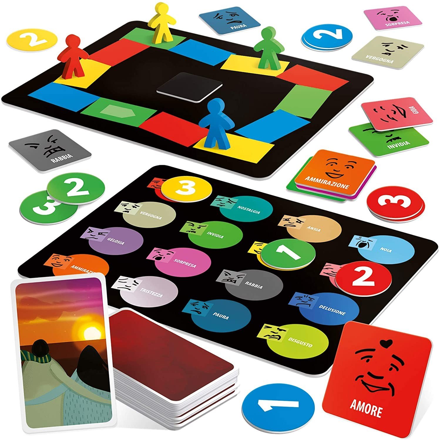 - CONTENUTO: 1 tabellone; 110 carte-situazione; 16 tessere-emozione; 12 gettoni-voto; 4 segnaposto; Regolamento