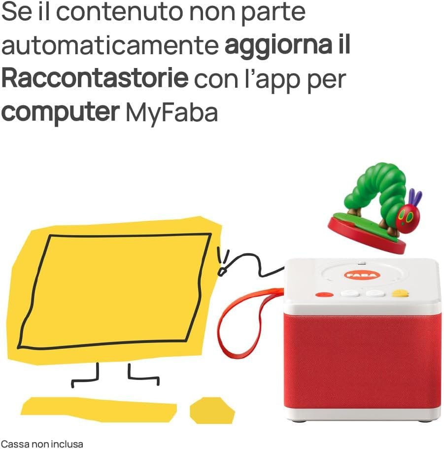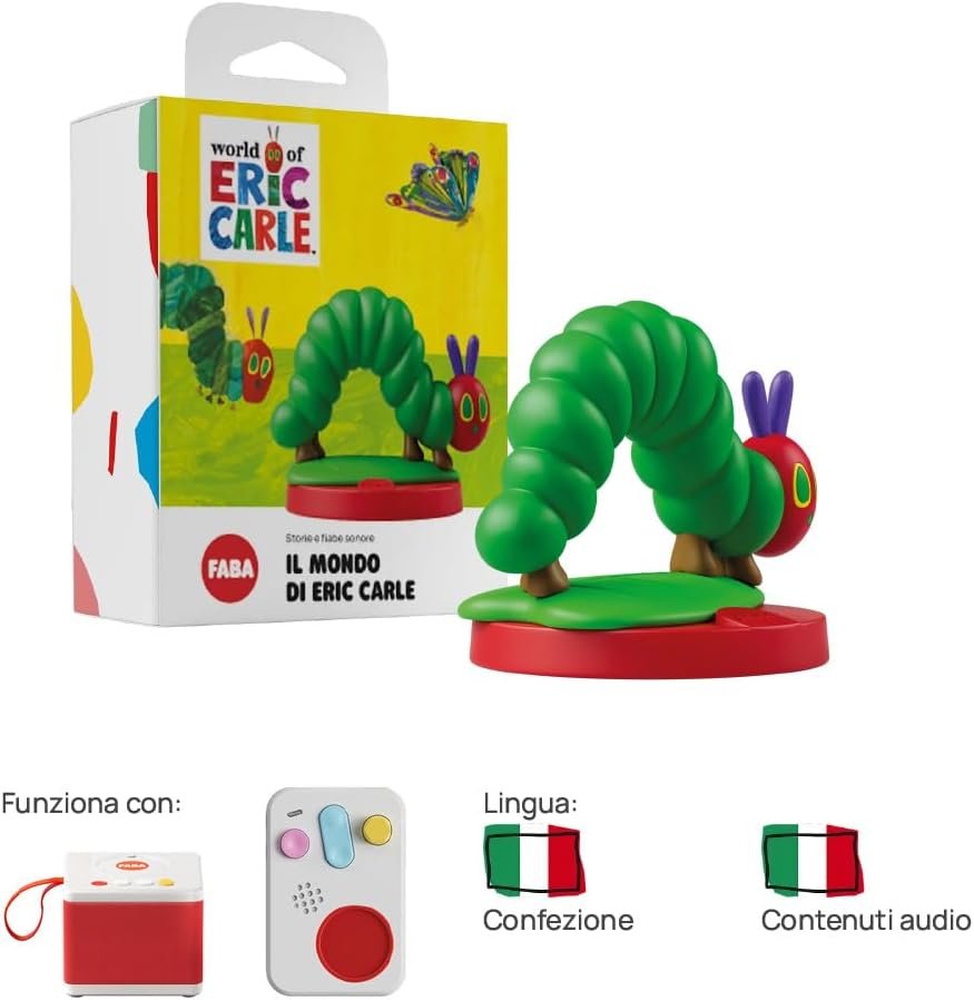 è un personaggio sonoro FABA che raccoglie 7 racconti tra i più amati dell’autore, tra cui Il piccolo Bruco Maisazio e La coccinella prepotente. Con circa 30 minuti di contenuti, è pensato per bambini 1–3 anni e stimola creatività, comunicazione e apprendimento.