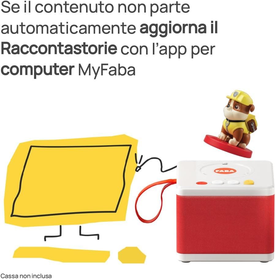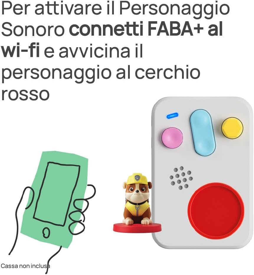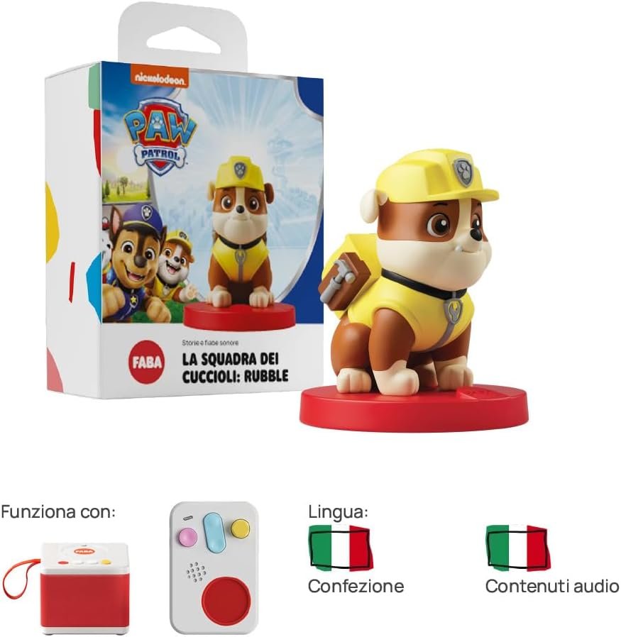 , il bulldog costruttore della PAW Patrol, arriva nel mondo FABA con tre storie sonore tratte dagli episodi originali della serie. Con le voci ufficiali e un racconto coinvolgente, questo personaggio sonoro è perfetto per bambini dai 3 ai 5 anni e compatibile con tutti i raccontastorie FABA.