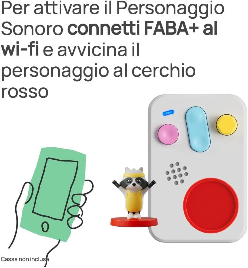 Il FABA Starter Set FABA+ è il nuovo sistema narrativo interattivo pensato per bambini da 0 a 10 anni. Include lo speaker FABA+ con luce notturna integrata, routine nanna, contenuti musicali e il personaggio sonoro FABA•Me, personalizzabile tramite app. Grazie alla connessione Wi-Fi, consente di scaricare e gestire contenuti audio educativi e divertenti direttamente da MyFABA. Funziona senza schermo, favorendo ascolto attivo, autonomia emotiva e sviluppo del linguaggio. Compatibile con tutti i personaggi FABA.