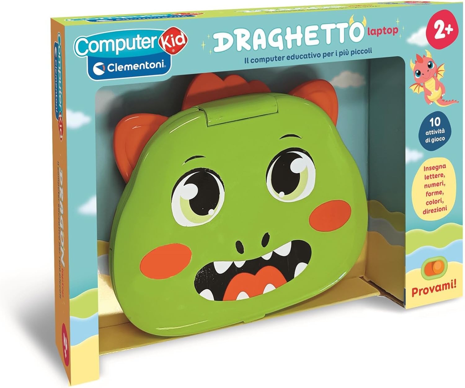 Il Fantasy Laptop Draghetto è un laptop educativo interattivo pensato per bambini dai 2 anni in su, ideale per imparare giocando. Con un design colorato e simpatico a forma di draghetto, propone 10 attività educative in lingua italiana per scoprire lettere, numeri, forme, colori e melodie. I pulsanti grandi e intuitivi, la voce guida e gli effetti sonori rendono l’esperienza coinvolgente e stimolante. Compatto, sicuro e dotato di batterie incluse, è perfetto per sviluppare le prime abilità cognitive e motorie in modo divertente e autonomo.