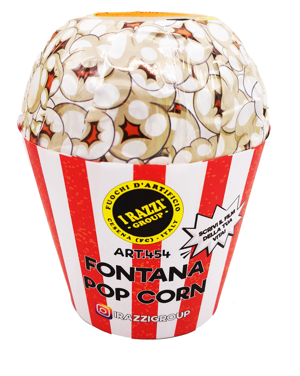 Fontana Pop Corn – Fuoco d’artificio da terra con effetto multicolore e finale crepitante. Categoria F2, durata circa 120 secondi. Ideale per feste private all’aperto.