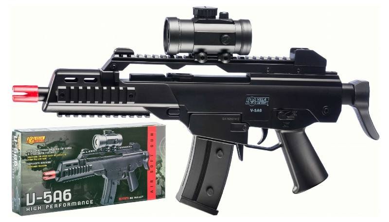 Fucile V-5A6 Cal. 6 mm – Villa Giocattoli Il Fucile V-5A6 è un giocattolo d’azione pensato per bambini dai 6 anni in su, ideale per simulazioni tattiche e giochi di ruolo. Realizzato in metallo e plastica resistente, presenta un design compatto e realistico con finitura nera opaca. Funziona con capsule sonore calibro 6 mm (non incluse), che simulano lo sparo in modo sicuro e coinvolgente. L’impugnatura ergonomica e la struttura bilanciata garantiscono una presa stabile. Perfetto per giochi all’aperto, cosplay o collezionismo.