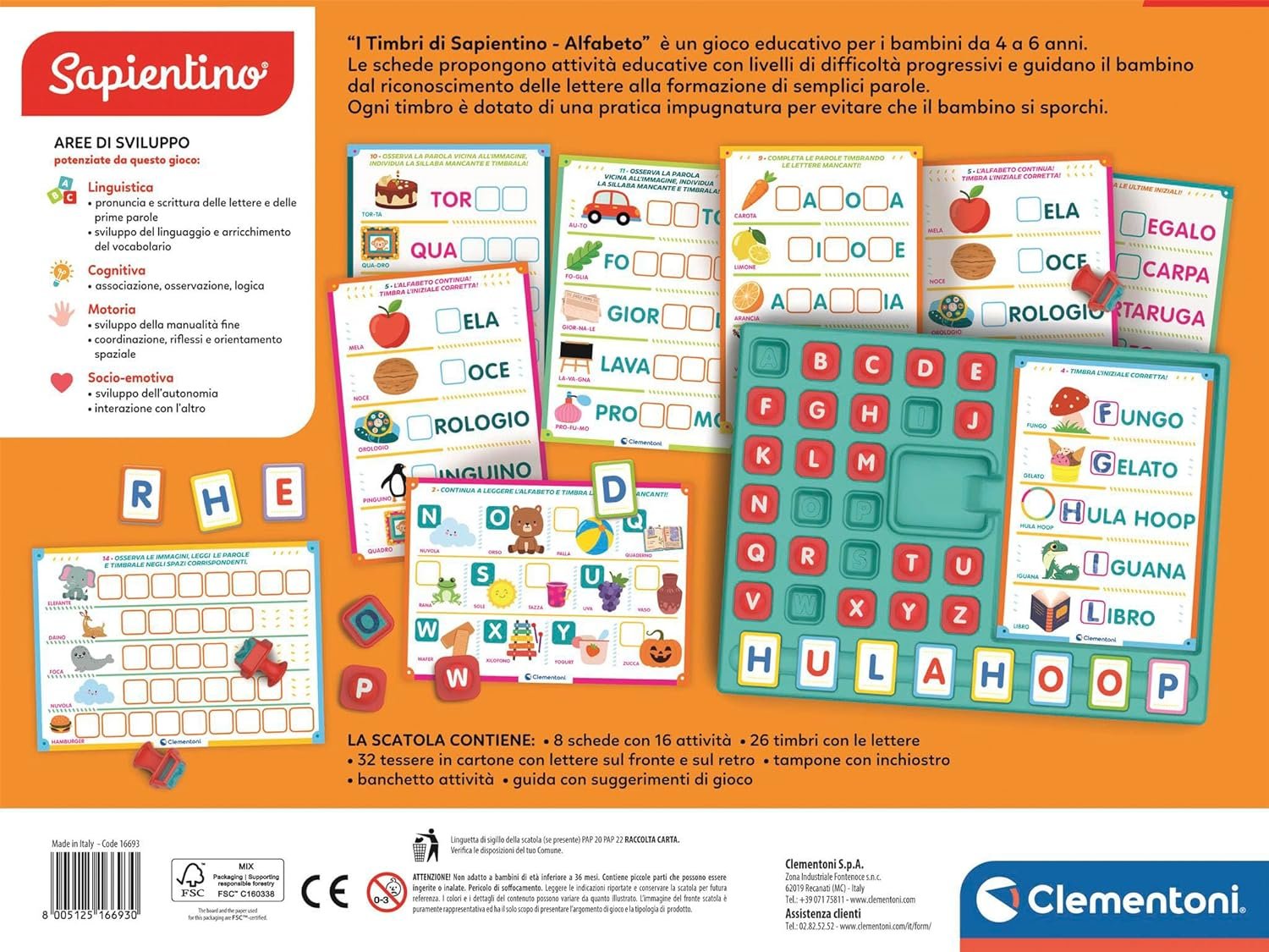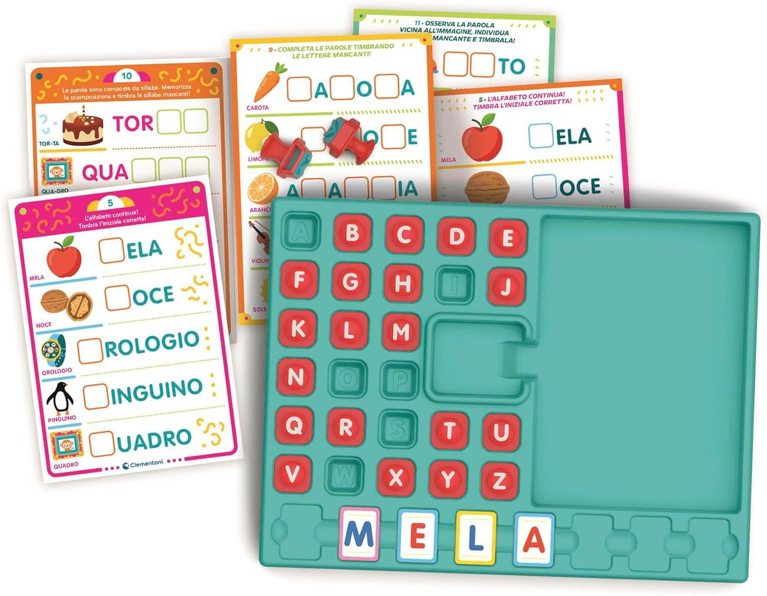 Grazie all’uso dell’inchiostro e alla ripetizione visiva, i bambini imparano a riconoscere le lettere, a familiarizzare con la loro forma e a comporre le prime parole in modo naturale e coinvolgente. Il set stimola manualità fine, coordinazione occhio‑mano e curiosità linguistica, trasformando ogni timbrata in un piccolo traguardo educativo.