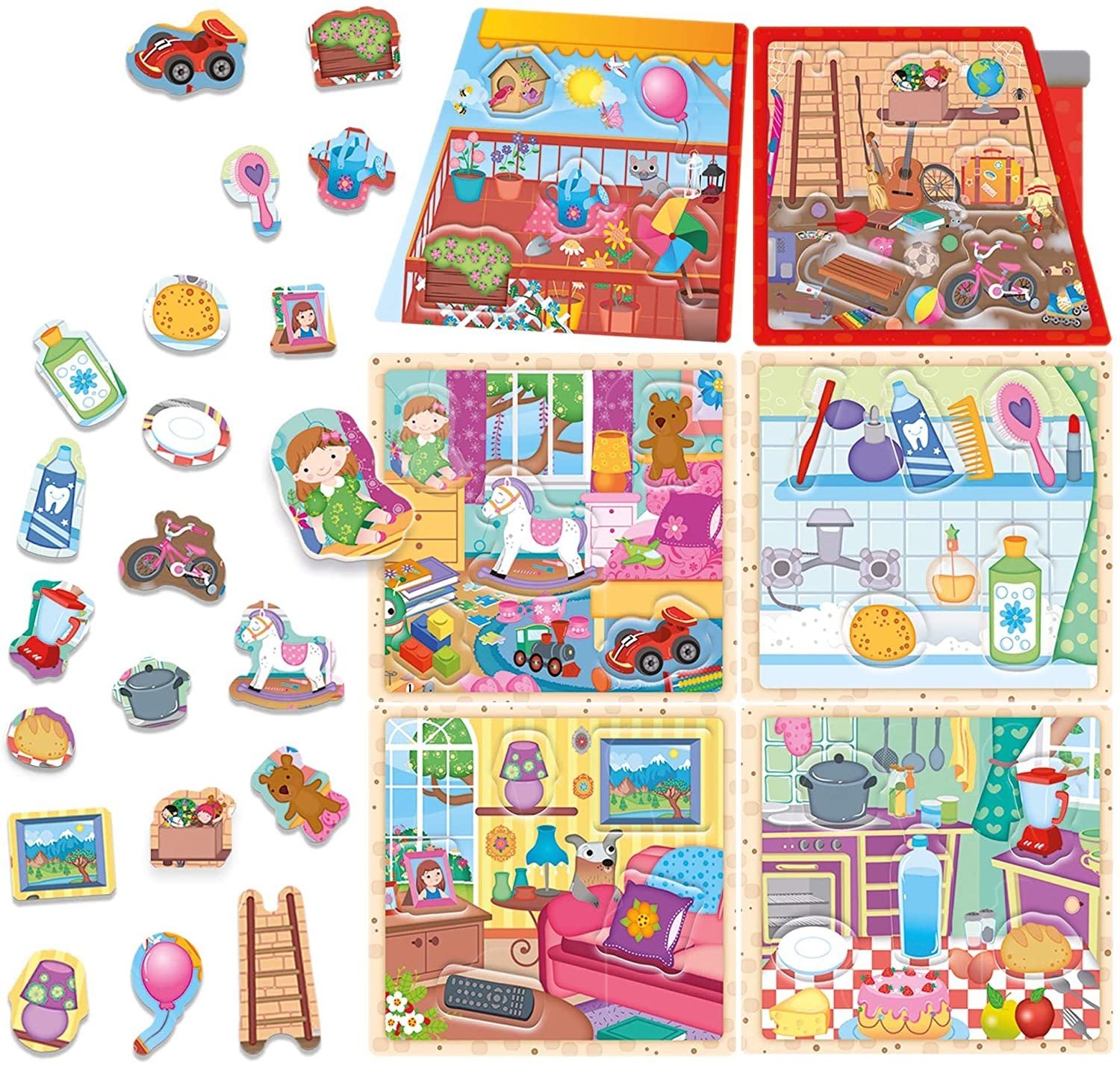 - Contenuto: casetta da ricomporre con 6 schede ambiente; 30 tessere sagomate; guida didattica
