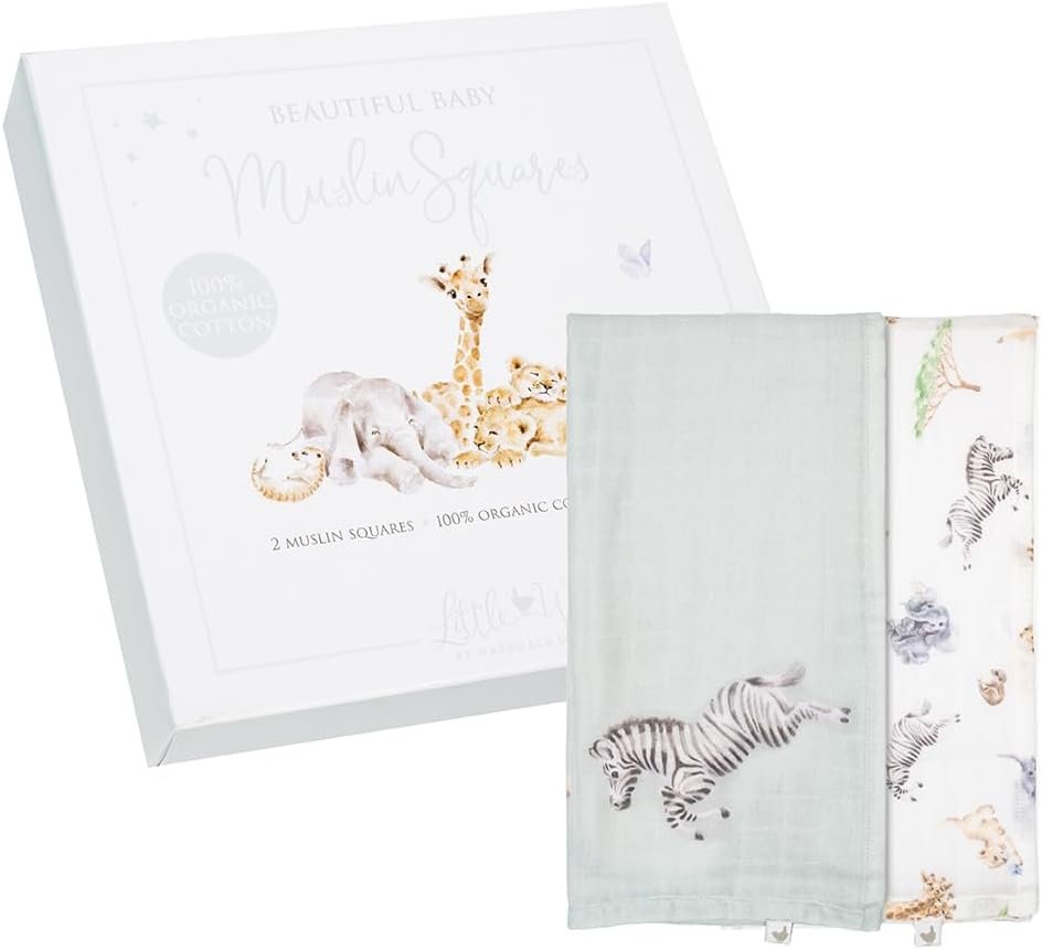 Il Little Wren Muslin Gift Set – Little Savannah è un set regalo pensato per accompagnare i primi momenti di vita dei più piccoli con dolcezza, comfort e qualità. Al suo interno racchiude una morbida mussola in cotone e un tenero scricciolo in peluche, due elementi essenziali che offrono al bambino una sensazione di sicurezza e familiarità.