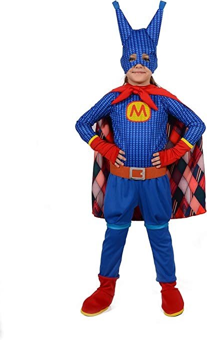 Contenuto: Casacca, pantaloni con copriscarpe, mantello con fiocco, cuffia, guanti, cintura