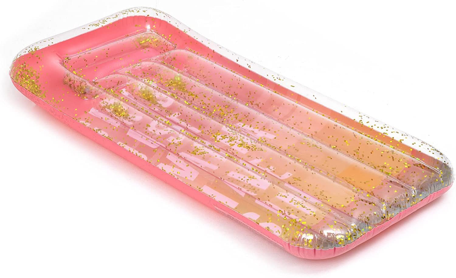 - CARATTERISTICHE: a due camere d’aria. Include una toppa autoadesiva per riparare piccoli fori. Adatto a maggiori di 14 anni. Peso massimo supportato: 90 kg. Il prodotto non è idoneo all’utilizzo in acque libere o dove presenti forti correnti. Nessuna protezione contro l’annegamento. Utilizzare in acque non profonde e, per i bambini, sotto la supervisione di un adulto. Design particolare, all’interno della materassino ci sono dei glitter oro. Materassino leggero e maneggevole. Resistente e durevole.