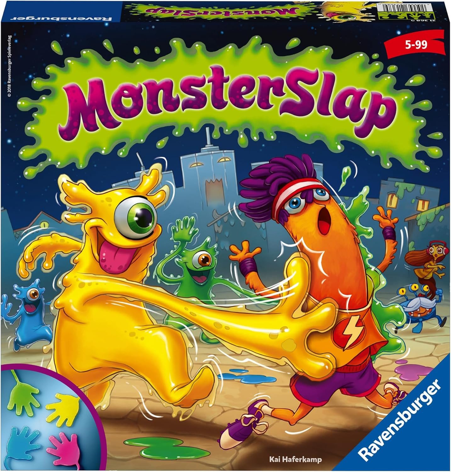 Ambientato a Mostricciolandia, il gioco coinvolge da 2 a 4 giocatori in una caccia frenetica: si prende una mano gelatinosa, si punta e… SLAP! Chi riesce a catturare più mostri avanza con la propria pedina e si avvicina alla vittoria. Il gioco stimola coordinazione, riflessi e attenzione visiva, ed è perfetto per feste, pomeriggi in famiglia o attività scolastiche.