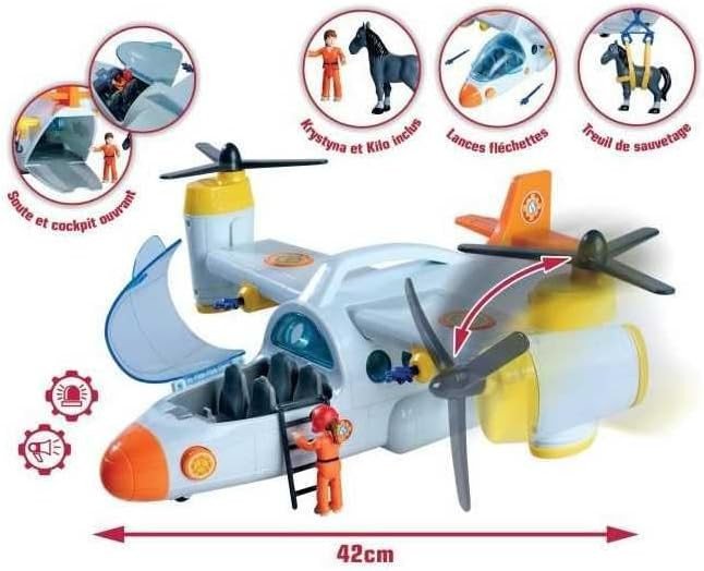 Sam Fire Swift Rescue Plane – Aereo di soccorso con luci e suoni Pronto al decollo per missioni di salvataggio! L’aereo di Sam il Pompiere è lungo 42 cm e dotato di luci, suoni realistici, verricello funzionante, portellone apribile e lanciatore per simulare interventi d’emergenza. Include il personaggio articolato di Sam, perfetto per ricreare scene d’azione e gioco di ruolo. Ideale per bambini dai 3 anni in su, è compatibile con gli altri playset della serie. Un veicolo completo per piccoli eroi in volo