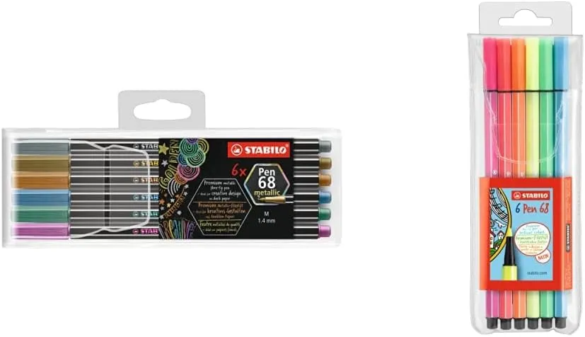 Descrizione prodotto Il STABILO Pen 68 Metallic è un set di pennarelli metallizzati racchiusi in un pratico astuccio in plastica contenente 6 colori assortiti. Grazie alla punta media e all’inchiostro brillante, questi pennarelli sono perfetti per decorazioni, lettering, biglietti d’auguri e progetti artistici su carta chiara e scura.