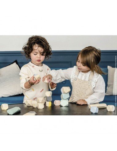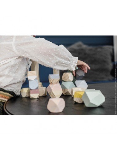 Set di 20 pietre in legno con forme e dimensioni diverse.