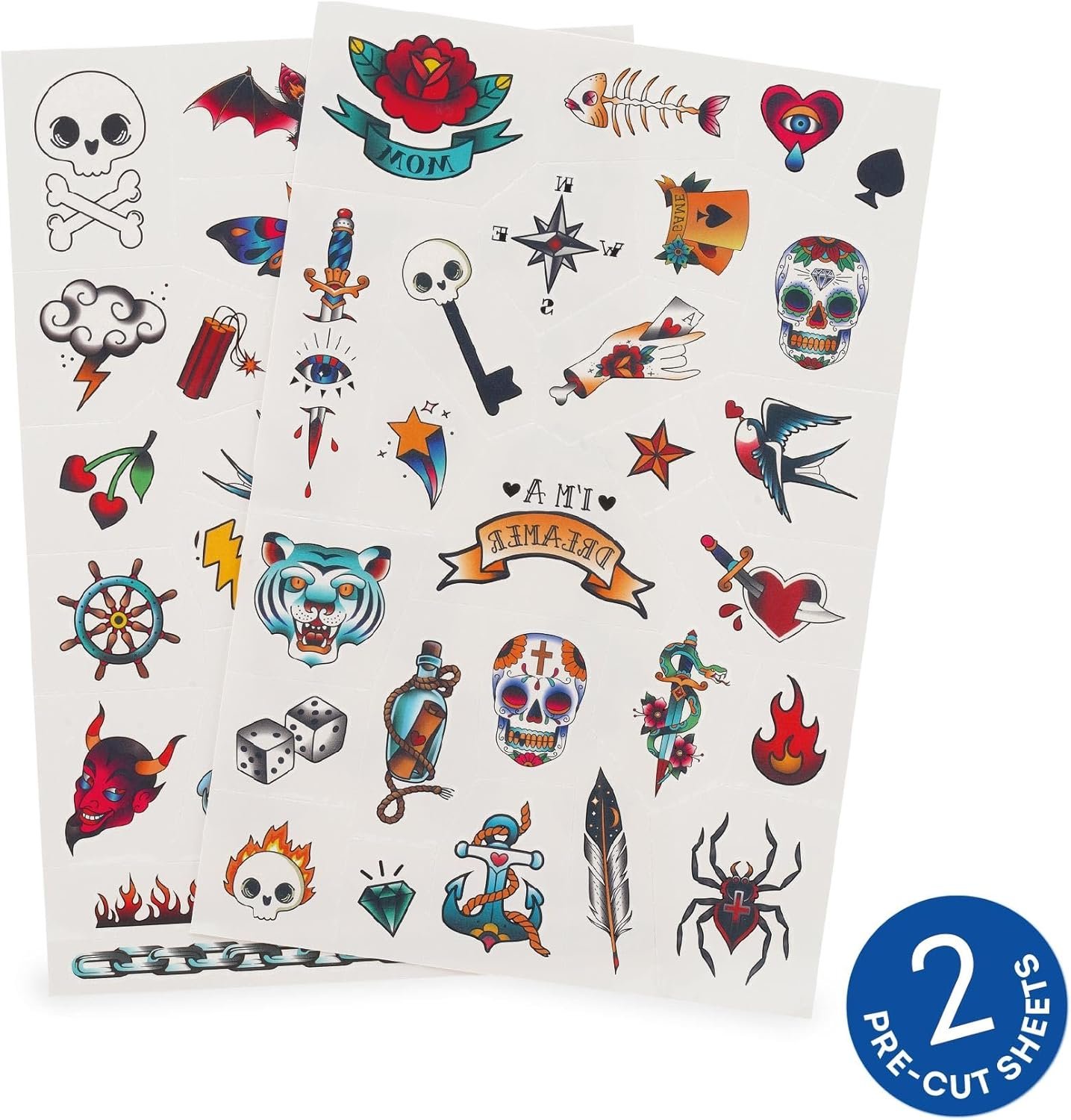 L’applicazione è semplice: basta un po’ d’acqua per trasferire il tatuaggio sulla pelle in pochi secondi. Sono realizzati con materiali sicuri per i bambini e si rimuovono facilmente con acqua e sapone o con una salvietta delicata. Perfetti per feste di compleanno, giochi di ruolo, premi scolastici o come piccolo regalo creativo.
