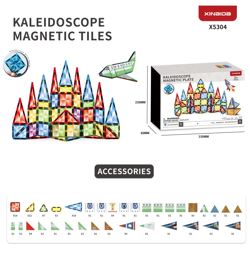 TESSERE MAGNETICHE CALEIDOSCOPIO è un gioco creativo ed educativo che permette ai bambini di costruire figure e composizioni colorate grazie a tessere magnetiche di diverse forme e tonalità.