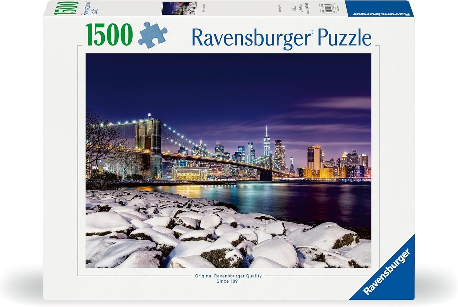 Winter in New York 1500p di Ravensburger è un puzzle da 1500 pezzi che raffigura una suggestiva scena invernale della Grande Mela, perfetto per adulti e appassionati di paesaggi urbani.