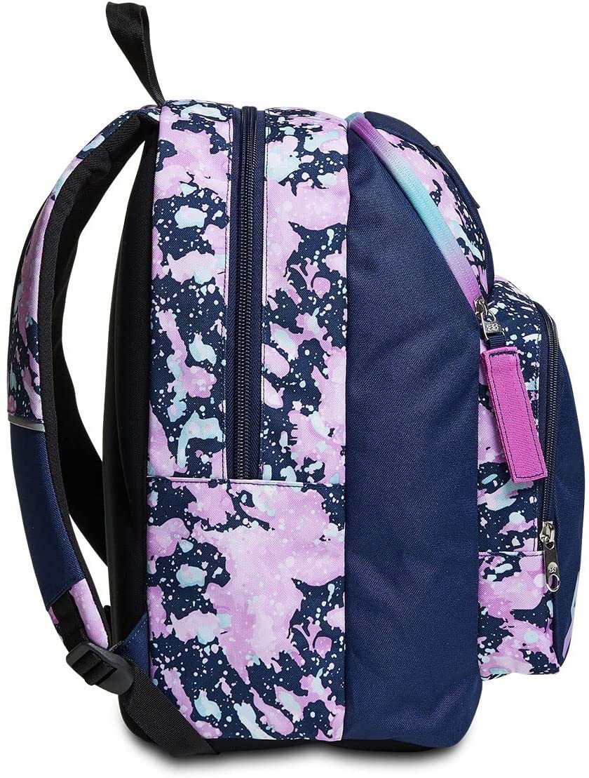 - TASCHE: Tasca frontale chiusa con zip, tasca laterale in rete porta borraccia. ALTRE CARATTERISTICHE’: Zaino doppio scomparto, accesso secondo scomparto tramite zip a U rovesciata, zip resinata ed a rovescio su tasca frontale, stampa sfumata su tasca frontale